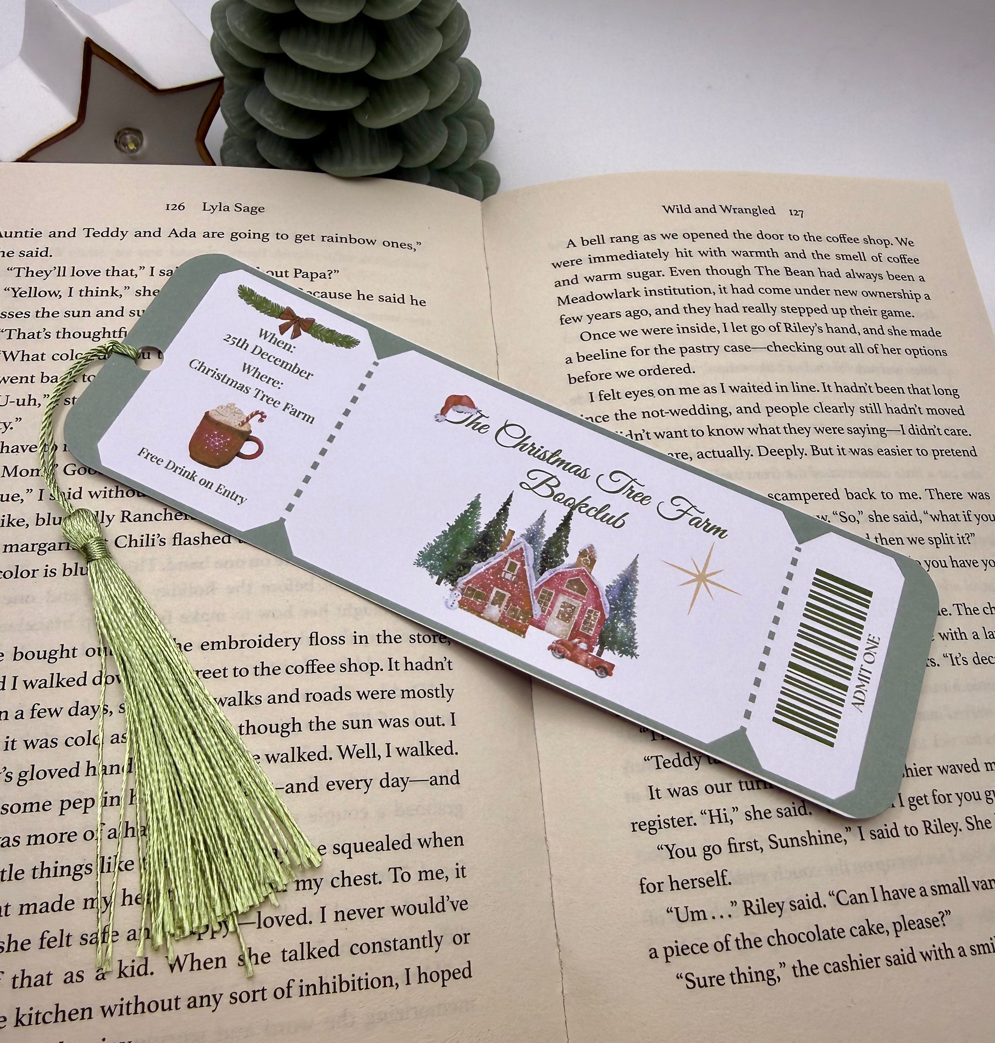 Christmas Tree Farm Book Club Ticket Bookmark – Festive Reading Gift | Cosy Winter Bookmark | Book Lover Christmas Gift